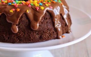 Para a cobertura: você pode derreter uma barra de chocolate no micro-ondas e jogar sobre o bolo. Depois enfeite com confeitinhos coloridos.